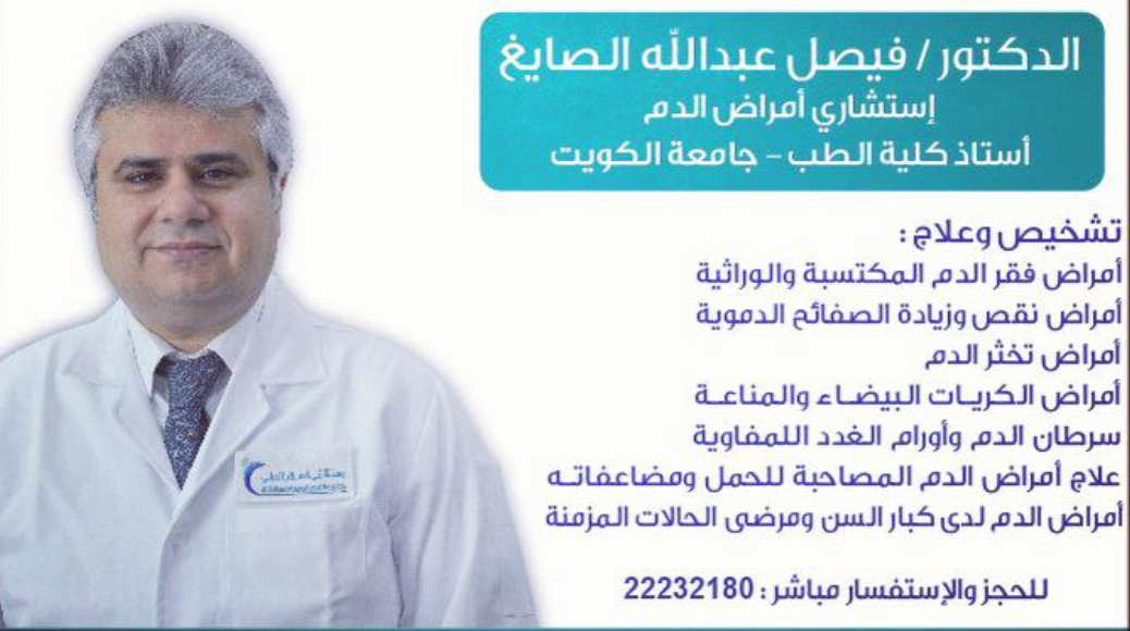 استشاري امراض الدم استاذ كلية الطب جامعة الكويت